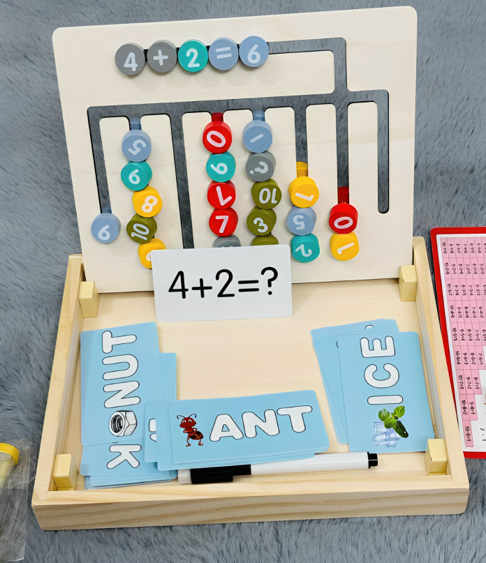 Wooden Multi-Functional Education Board with Abacus & Magnetic Letters